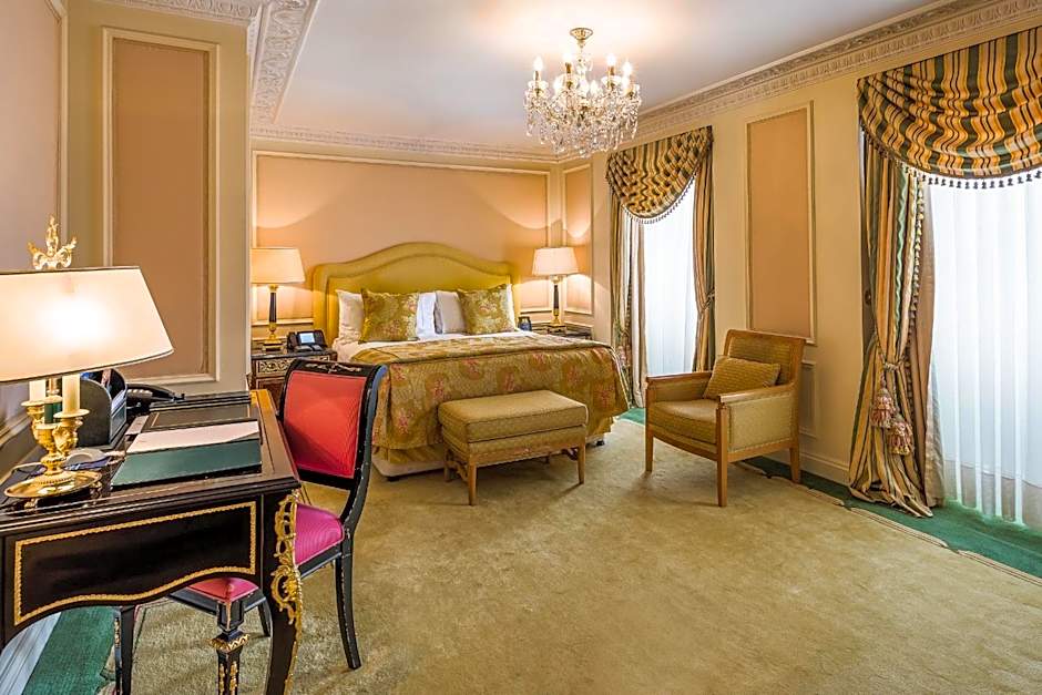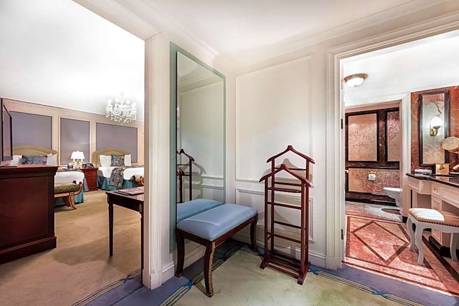 These elegant rooms have a large marble bathroom and sumptuous silk covered walls, touch-screen telephone, and high-speed internet.